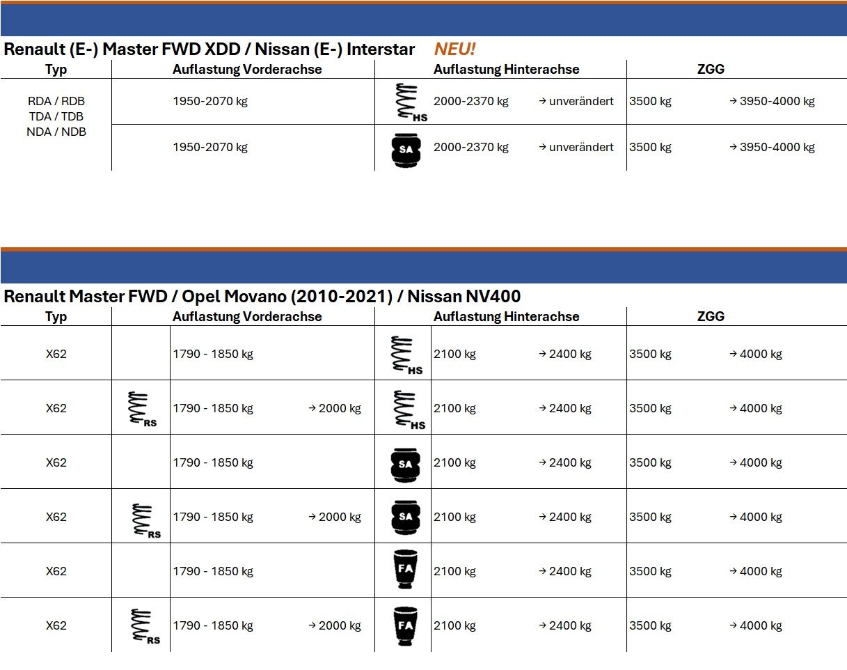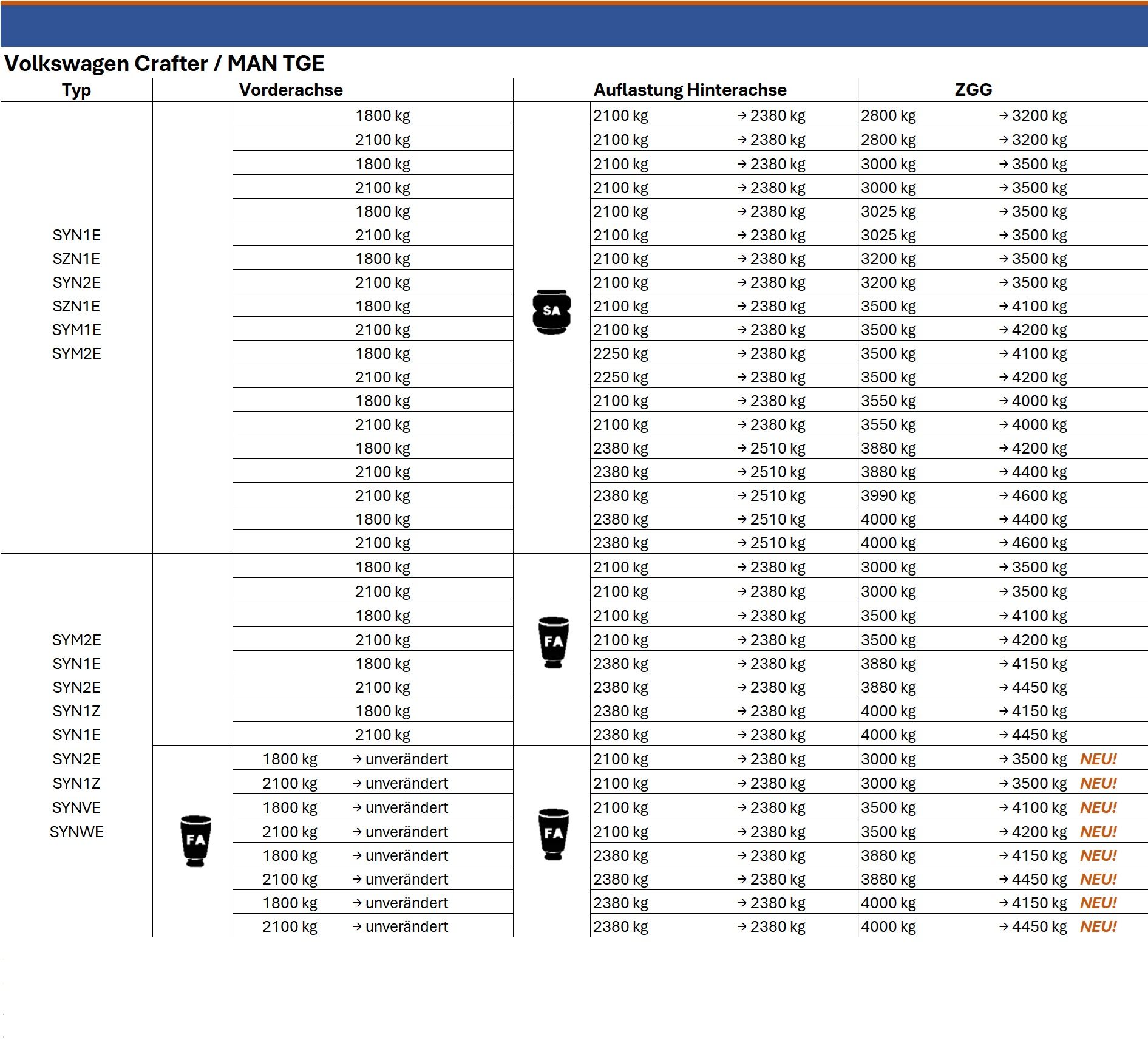 - Proces: Kontakt os, da vi skal levere dokumentation for, at køretøjet (chassiset) dæk ogfælge er konstrueret til en evt. højere totalvægt.